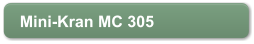 Mini - Kran MC 305 CRMTragkraftkg2.930 bei 2,50 mMax. Arbeitsbereichm12,16Max. Hebehöhem12,66Hubgeschwindigkeitm/min15Schwenkwinkel°360 endlosKranabmessungenm4,12 x 1,28 x 1,70Abstützungen4 (hydraulisch)Seiltyp IWRC Klasse 6 x Fi (29) f 8mm x 73 mEigengewichtkg3770Antrieb Yanmar 19 PS/ DieselTankfassungl37Standardausrüstung: Fernbedienung, Lastüberwachung, Arbeitsscheinwerfer, 2-Rollen-Kranhaken