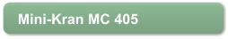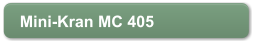 Mini - Kran MC 405 CRMTragkraftkg3830 bei 2,70 mMax. Arbeitsbereichm16,00Max. Hebehöhem16,80Hubgeschwindigkeitm/min10Schwenkwinkel°360 endlosKranabmessungenm4,98 x 1,38 x 1,98Abstützungen4 (hydraulisch)Seiltyp IWRC Klasse 6 x WS (26) f 8mm x 95 mEigengewichtkg5600Antrieb Yanmar 29,6 PS/ DieselTankfassungl60Standardausrüstung: Überdrehschutz, Lastüberwachung, hydraul. Sicherheitsventil, Drahtseilsperre, Neigungswarnsystem, EMO Schalter, Arbeitsscheinwerfer, 2-Rollen-Kranhaken, Betriebsstundenzähler