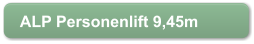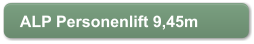ALP-PersonenliftArbeitshöhem9,45Plattformhöhem7,45Traglast max.kg160Längem1,38Breitem0,77Bauhöhem1,98Eigengewichtkg300Stellflächem1,50 x 1,50Antrieb